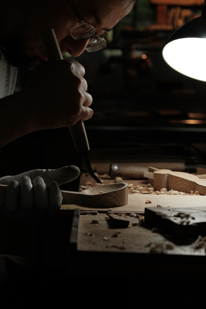 岐阜県中津川を拠点に〈木の匙のみ〉を制作する作家 金城貴史さん。