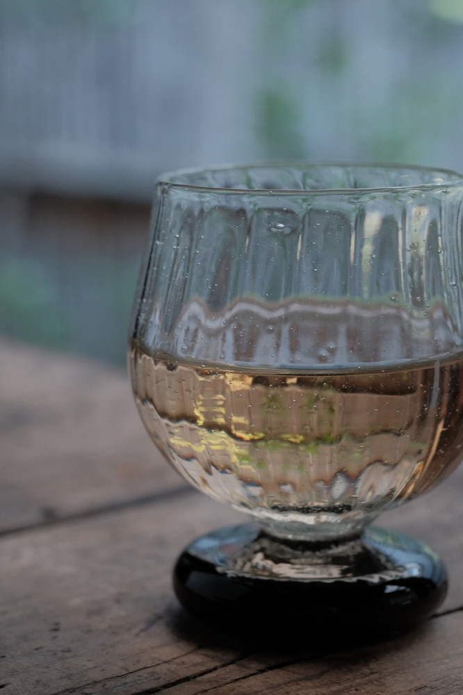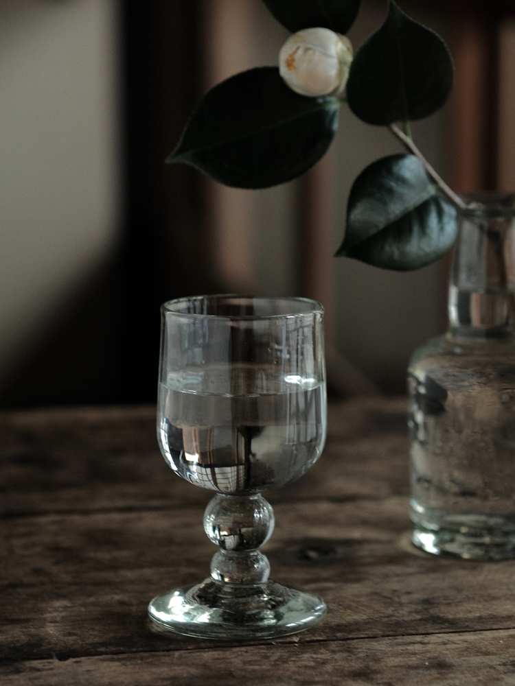 ───時にほかの仕事もしながら硝子製作は絶えず続けてきました。独立してからは必要最低限の設備で主に地元の酒蔵さんから頂いた空き瓶を溶かして製作しています。自分に与えられたもの、場所でこそ作れるものを。特別でなく何でもない日々の為のものを、その日々の中で繰り返し使われる中でより特別になりえるものを。そんな野望を持って製作しています。