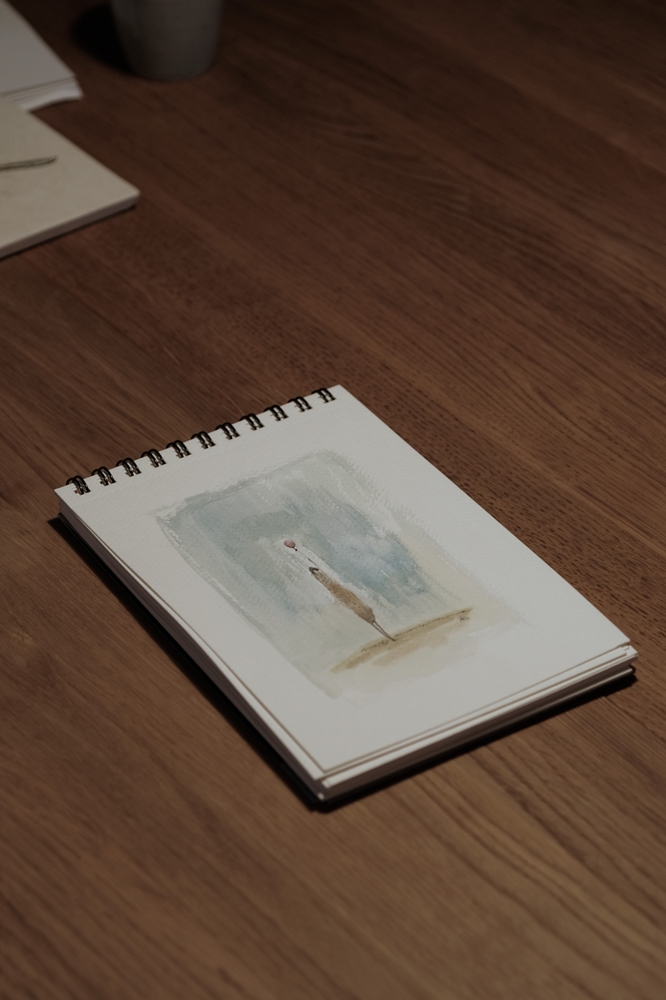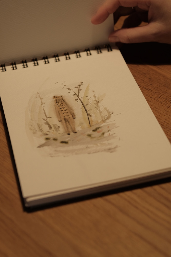 これまでの展覧会でのお話や、制作の基にもなっているイラストを見せて頂いたり、奥さまの影響で始めて今では習慣になっているという絵日記のお話。そしてこの岐阜に引っ越してきてから新しく始まったことやこれまでとは変化した部分を尋ねてみたところ、日本に古くからある禅思想や民間信仰と自身の制作姿勢との関わりについて考えるようになったという、興味深い話題が出てきた。
